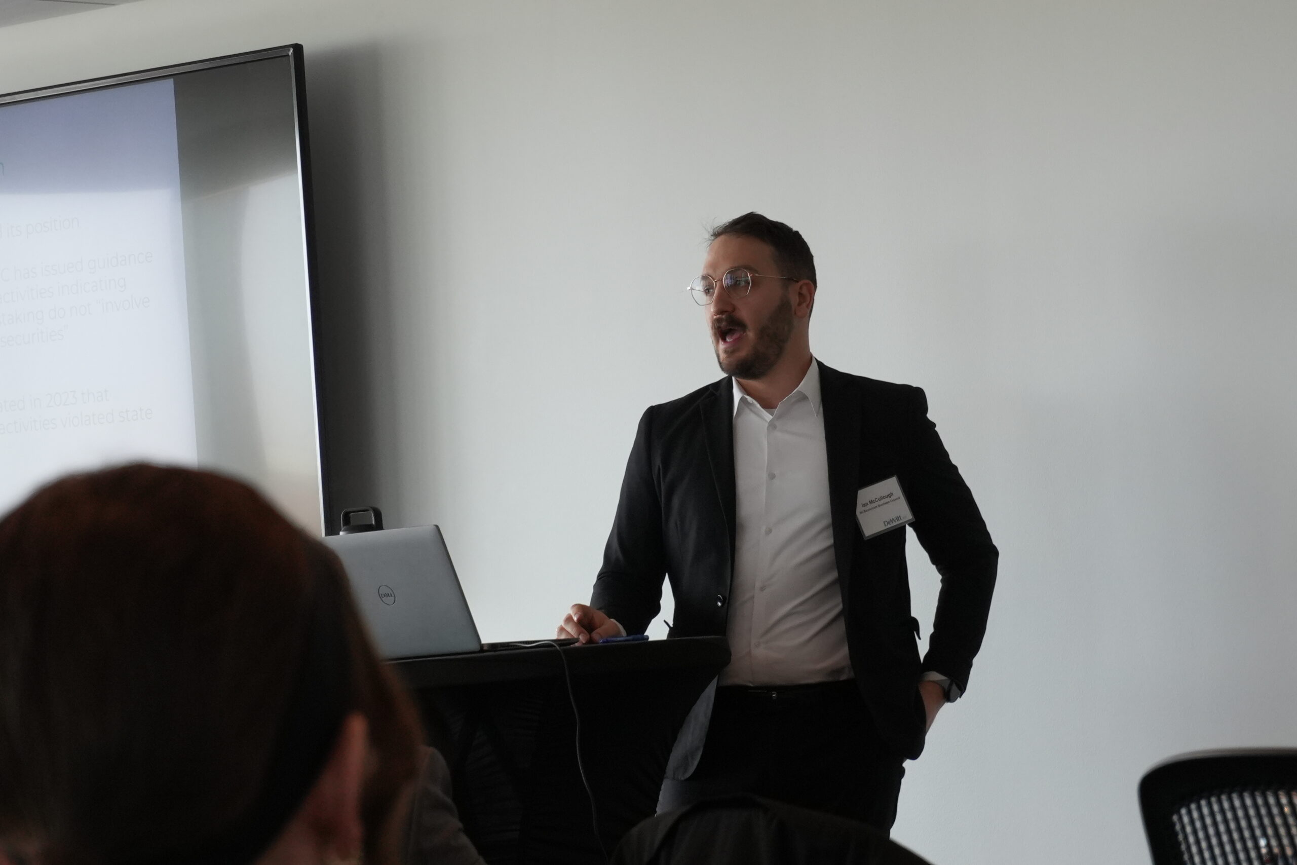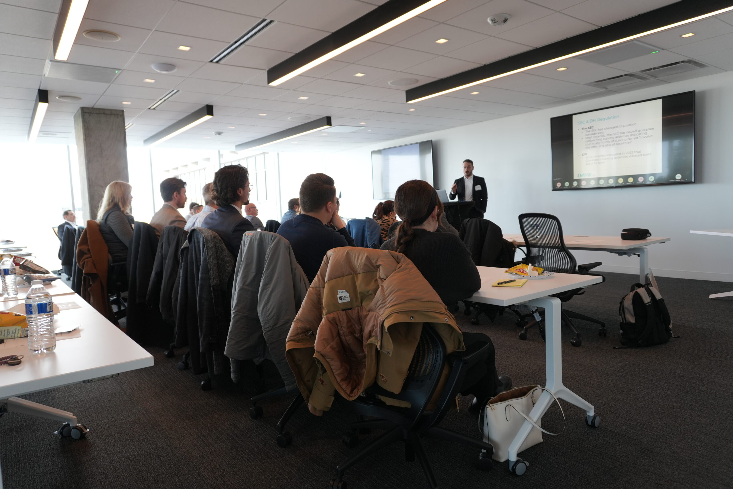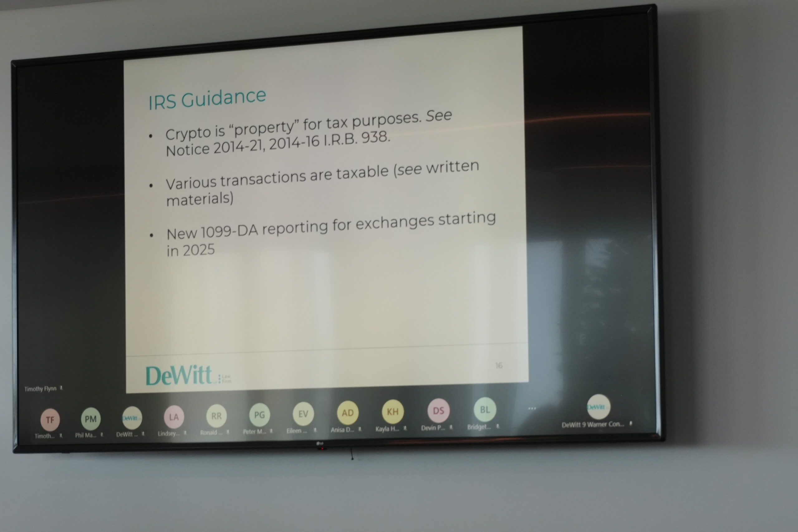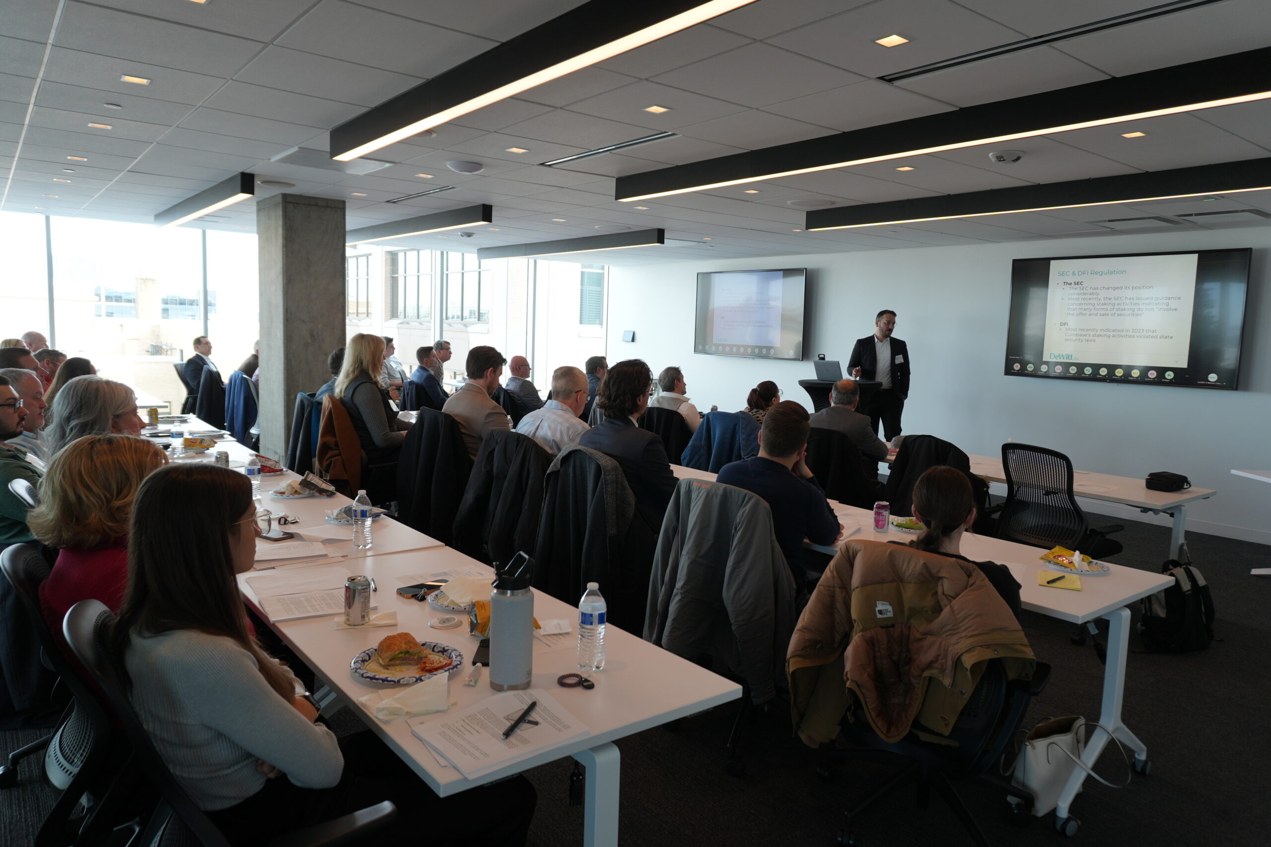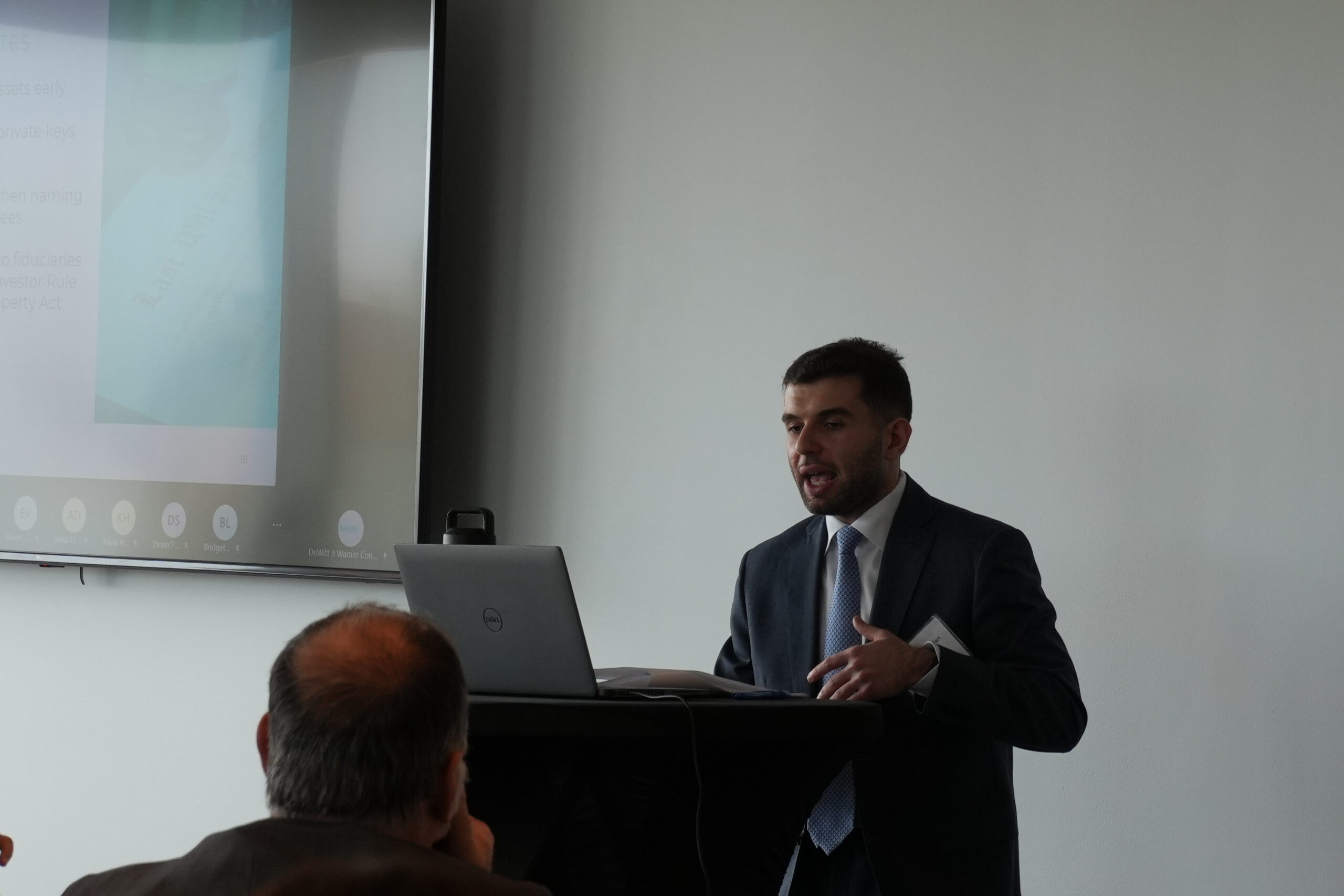 A packed-house at a DeWitt LLP in Madison with an audience of attorneys and financial planners focused on learning how blockchain and digital assets currently function from a legal and technical perspective.